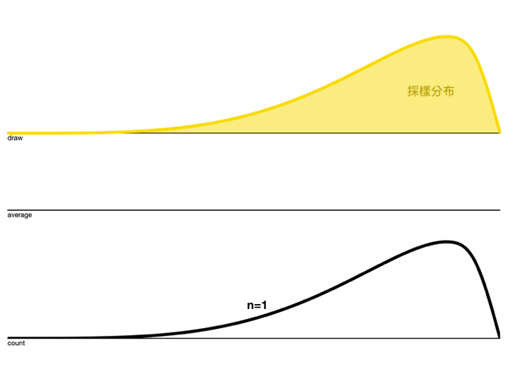 給定一個採樣分布(黃色),每次採樣 \(n=15\) 作平均並打點記下來,經過多次的操作就可以得到累積分布圖(紅色),而因為 \(n\) 夠大,所以這個累積分布圖會逼近於Normal Distribution。