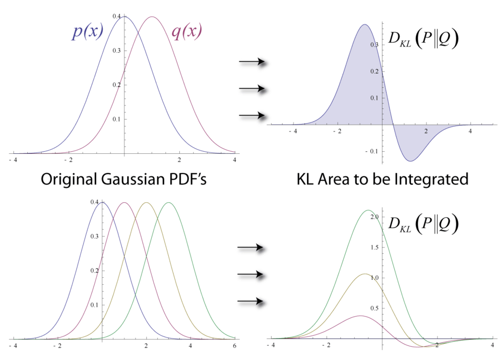 Divergence其實有多個形式,定義如下: 當有兩個獨立的機率分布\(p(x)\)和\(q(x)\)同時對應到同一個隨機變數\(x\),
